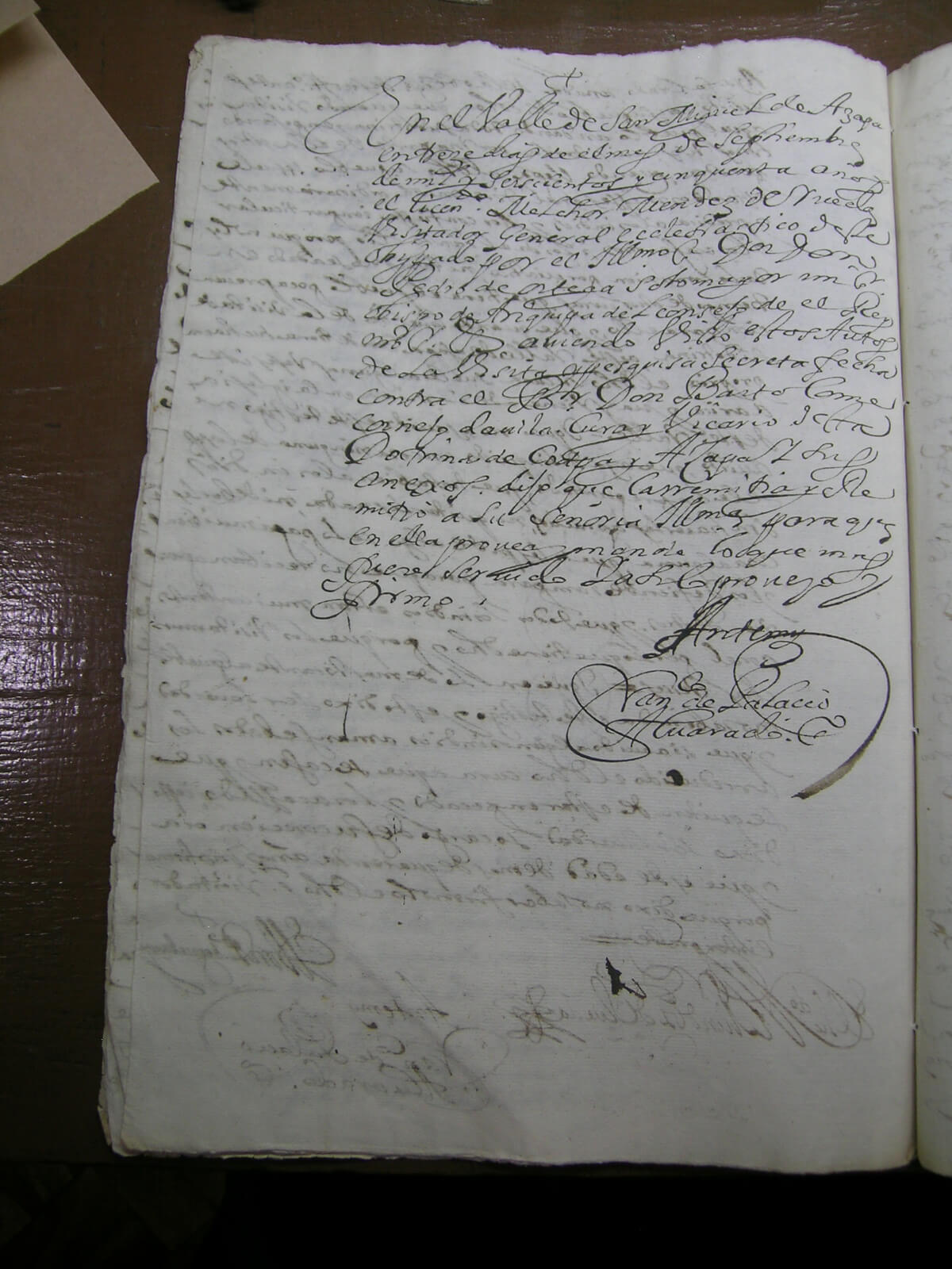 Consiste en el registro de la visita de don Melchor Méndez de Rueda, por orden del Obispado de Arequipa, a la iglesia de Azapa en el curato de Codpa, en el marco del juicio contra el eclesiástico don Bartolomé Cornejo Dávila por no atender apropiadamente los anexos de su doctrina.